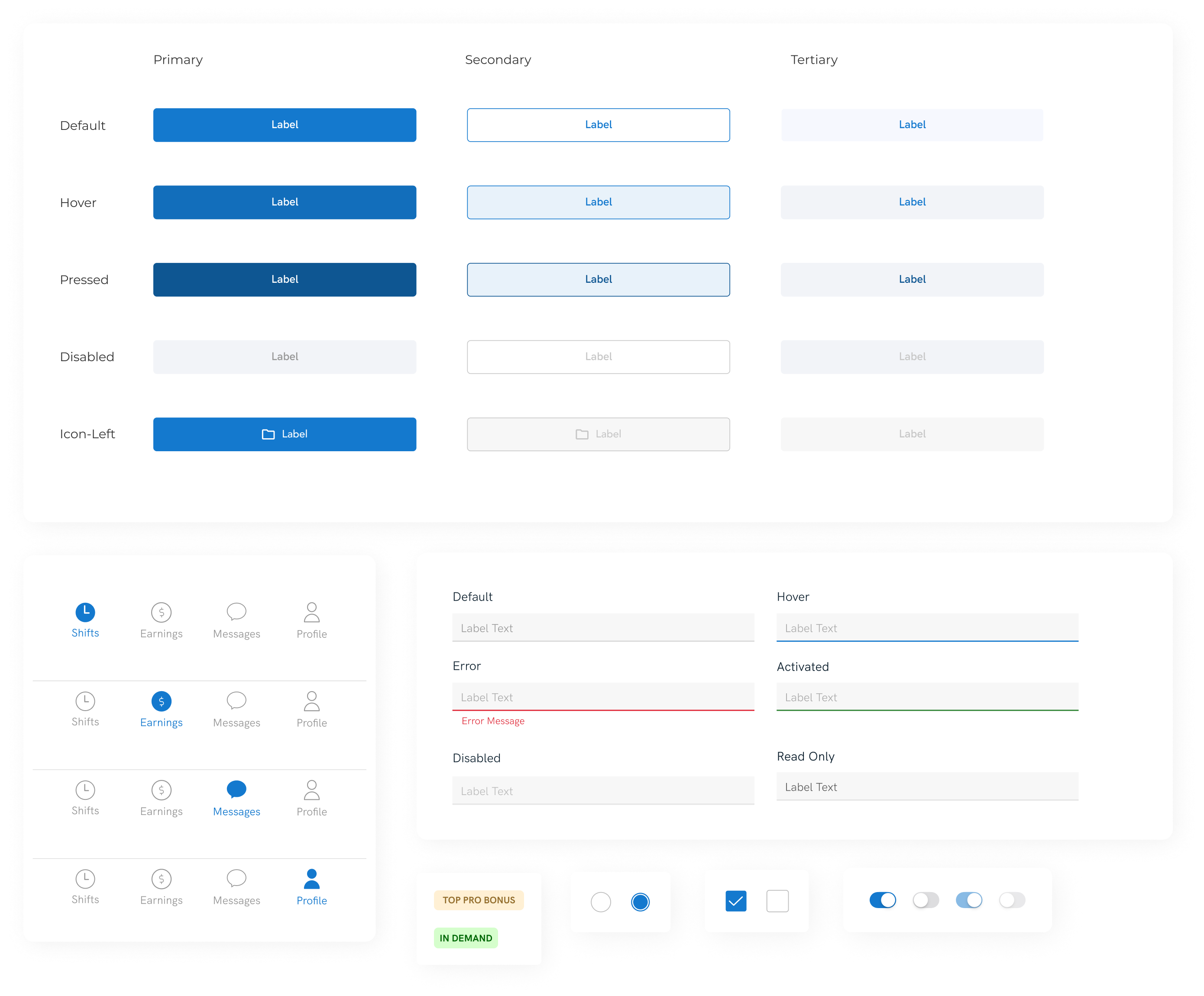 The goal was simple here, it was to make finding and managing shifts feel lightweight, not overwhelming. Clear hierarchy and spacing make it easier to quickly evaluate opportunities, while past and upcoming shifts are organized for fast reference.