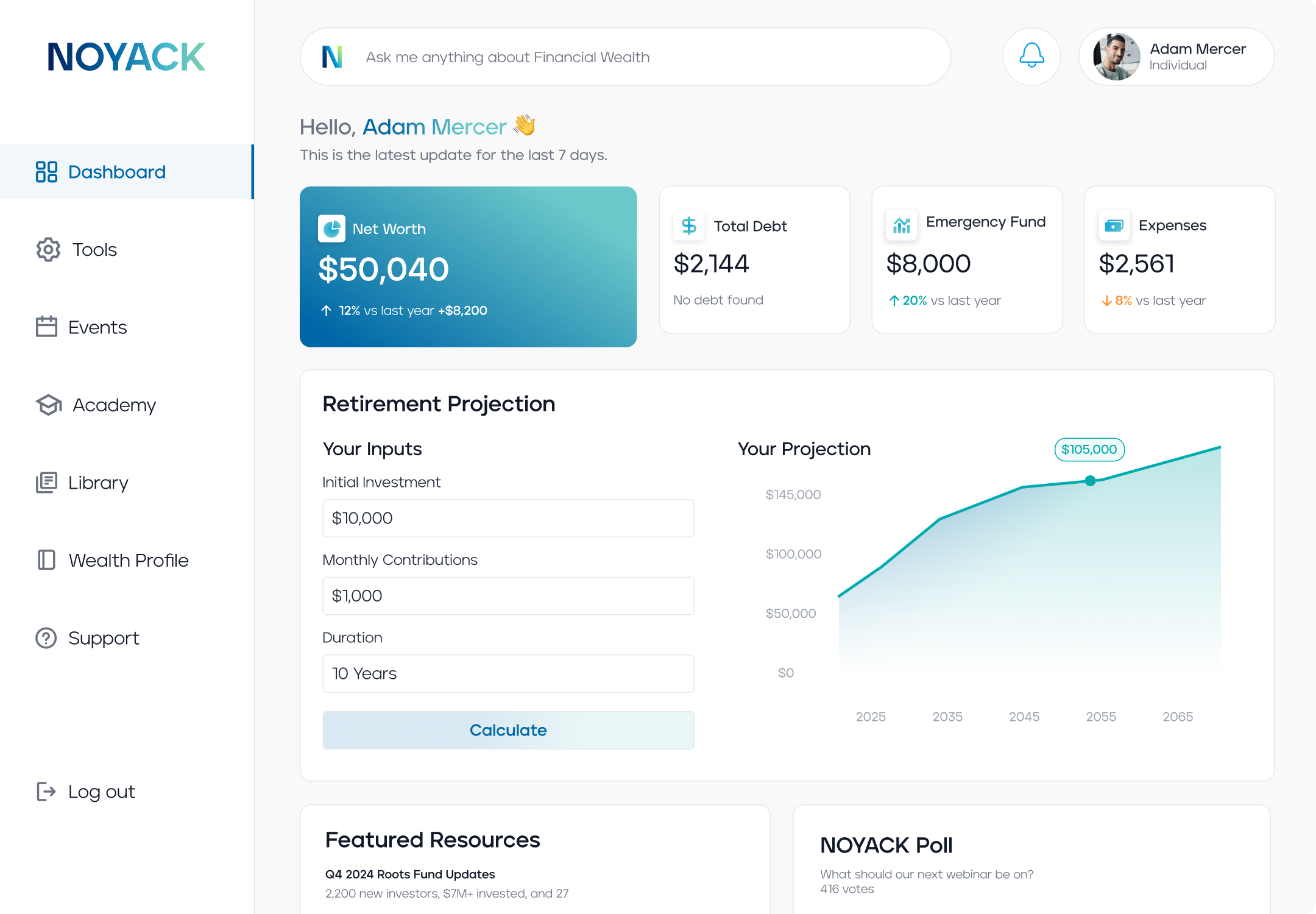 Testing revealed that users were less motivated by “learning about alts” and more driven by personalized financial clarity — leading us to reposition NOYACK around AI-powered wealth optimization rather than purely education.