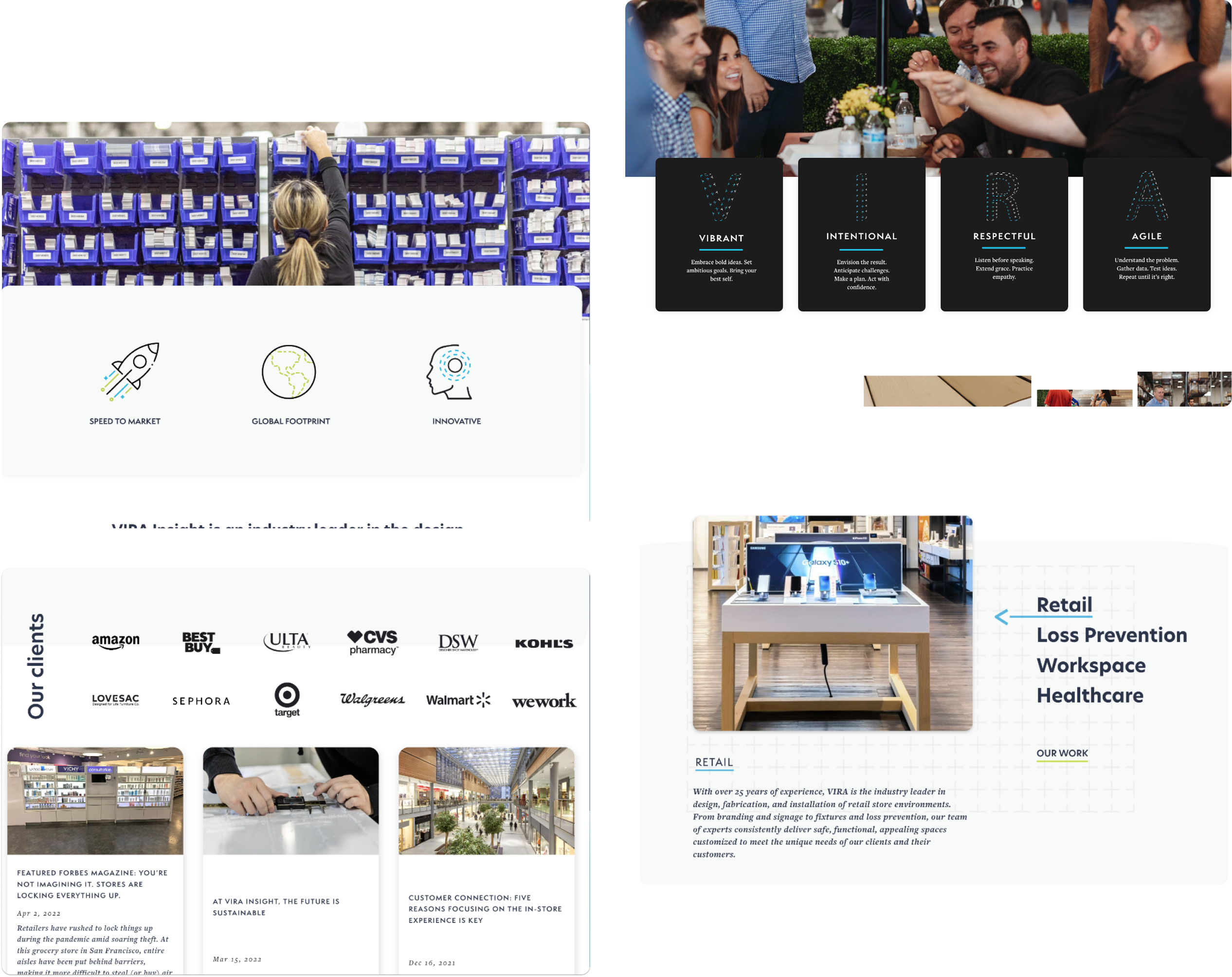 VIRA Insight is a global company specializing in retail environments, loss prevention systems, and custom in-store solutions. The goal of this project was to redesign the company’s website to better communicate its expertise, strengthen credibility with enterprise clients, and modernize the overall user experience.
